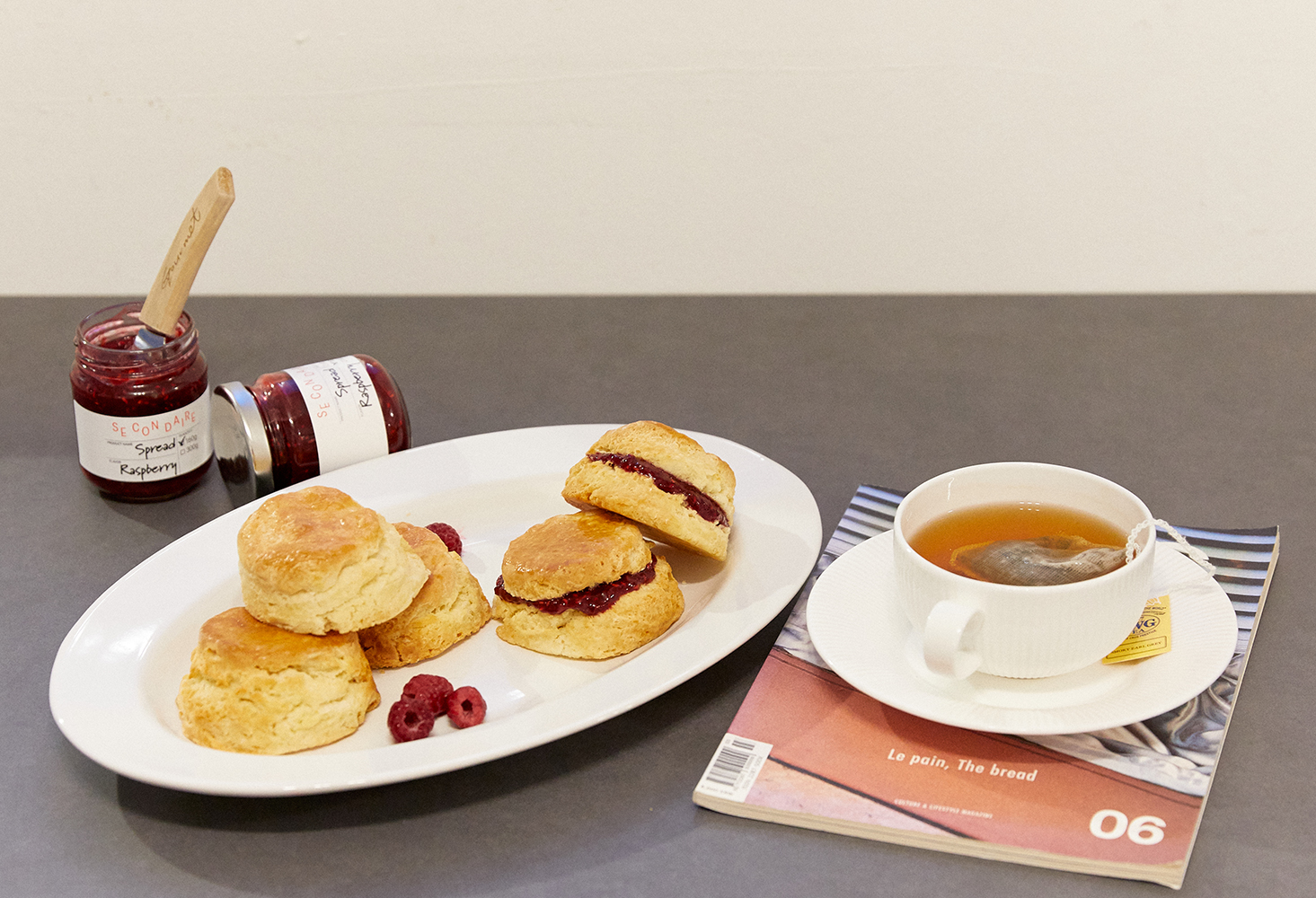 Raspberry Scone IngredientsRaspberry spread, all-purpose flour, baking soda, sugar, salt, butter 🍓 1. Measure out the flour and baking soda and place them in a bowl. * We will use all-purpose flour for a moist scone texture!2. In a separate bowl, whisk one egg, then add milk, sugar, and a pinch of salt and mix.3. Prepare cold butter, cut it into small pieces with a knife, and mash it into the flour bowl.* Please work quickly, as the heat from your hands can melt the butter.4. Pour the egg mixture into the flour bowl and mix it with the flour. * Pour in two or three batches.5. Cover the finished dough with plastic wrap to prevent it from drying out, then let it rest in the refrigerator for about 1 hour.6. Place the rested dough on a floured cutting board, roll it out with a rolling pin, and then use a cookie cutter to shape the dough into circles.7. Whisk one egg and brush it over the scone dough. Bake in an oven preheated to 170°C to 180°C for about 20 minutes.8. Let the hot scones cool slightly after taking them out of the oven, then cut them in half and spread the raspberry spread on them. Secondaire Youtubehttps://www.youtube.com/channel/UCD3YnTfukIT04LvaA8CK-PA Secondaire Instagramhttps://www.instagram.com/secondaire_official/ - A catalyst for you - 당신의 즐거운 미각을 경험하세요.